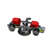 機器人采用四輪驅(qū)動,負載能力強,可在在垂直面及天花板面任意行走;電機驅(qū)動,具有穩(wěn)定可靠的立面吸附措施;機器人前端的毛刷盤負責清理和回收模板表面的粉塵和殘渣。